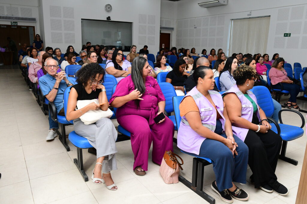 Como parte da programação de inauguração, foi realizada a palestra “Conscientização pelo Fim da Violência Contra a Mulher”, ministrada pela superintendente de Autonomia Econômica da Secretaria de Estado da Mulher, Marcele Portos, e pela advogada Priscila Pedrosa.